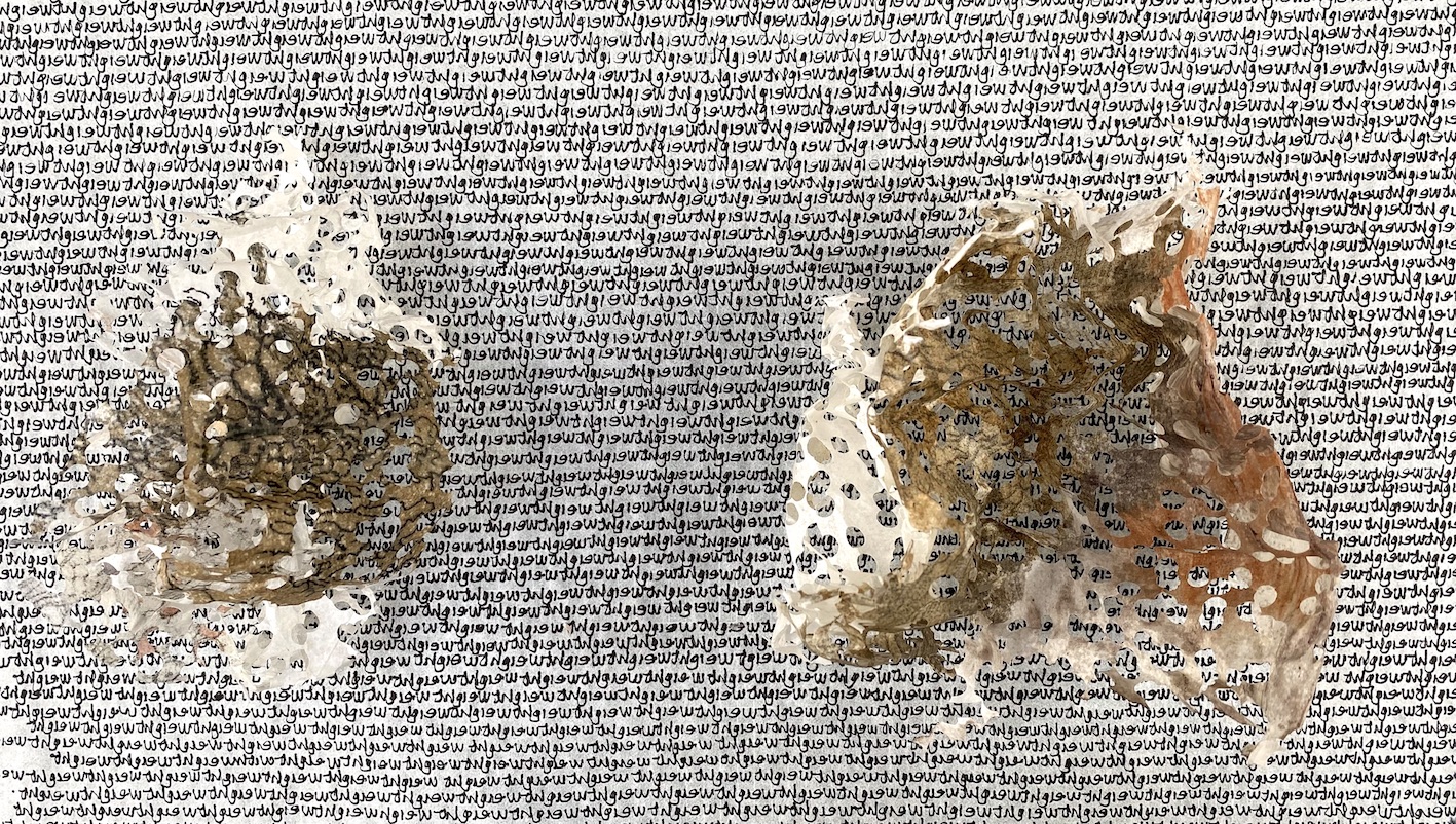 Weight of Words Biro on Mulberry paper Drawing Selected for Trinity Buoy Wharf Drawing Prize 2024