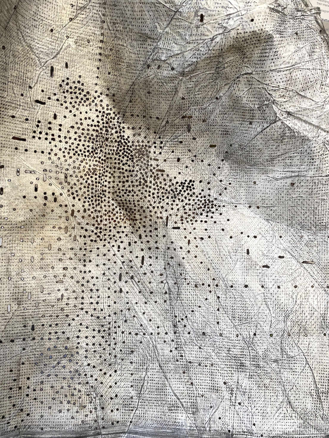 Detail of Fire Screen 89x79cm Japanese paper,graphite, burnt holes